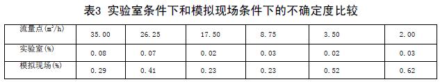 實驗室條件下和模擬現(xiàn)場條件下的不確定度比較(表3)兩次結(jié)果可以看出,兩次實驗各個流量點的不確定度差距非常大。可見,濃硫酸電磁流量計對安裝條件還是比較苛刻的。
