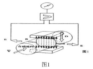 當(dāng)導(dǎo)電流體經(jīng)傳感器通道時,導(dǎo)電流體流向垂直于磁力線方向,流體流動時切割磁力線,在導(dǎo)電流體中有感應(yīng)電勢E產(chǎn)生,感應(yīng)電勢與流速之間的關(guān)系式為:E=KBvD