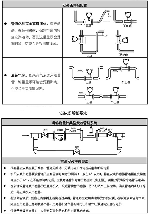 12、直管段要求:氣體:上游直管段應(yīng)≥10DN,下游直管段應(yīng)≥5DN;液體:上游直管段應(yīng)≥20DN,下游直管段應(yīng)≥5DN;插入式:上游直管段應(yīng)≥20DS,下游直管段應(yīng)≥7DS(DS為管道實(shí)測(cè)內(nèi)徑)