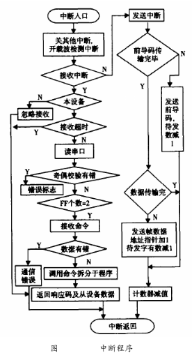 在HART通信中,耐腐蝕污水流量計作為從設備進行通訊,所以這里的軟件設計只是針對于從設備。HART通信采用水平和垂直校驗的方法。當檢測到接收數(shù)據(jù)有差錯時,則等到主設備命令幀發(fā)完后,通知主設備數(shù)據(jù)接收有誤。主設備則重新發(fā)命令幀,從而保證通信的準確可靠。HART中斷子程序流程圖如圖6所示。由于HART通信為主從方式,HART幀中每個字節(jié)在物理層傳輸需要9ms左右,為了保證通訊的實時性,通訊程序采用串行口終端接收/發(fā)送。該中斷所要完成通信中的主要任務,即接收和發(fā)送幀,幀的拆分和打包。