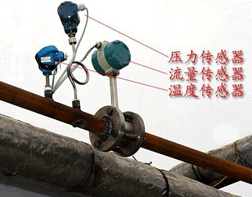 2、溫度補償一體型渦街流量計還帶有溫度傳感器,可以直接測量出飽和蒸汽的溫度并計算出壓力,從而顯示飽和蒸汽的質(zhì)量流量。