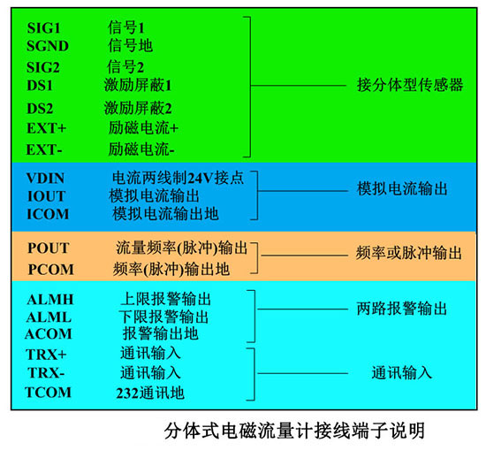 四、污水管網(wǎng)現(xiàn)場收方計(jì)量表轉(zhuǎn)換器接線端子接線圖說明