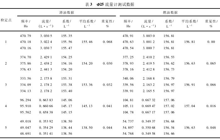 Φ25流量計(jì)測(cè)試數(shù)據(jù)如表3所示。
