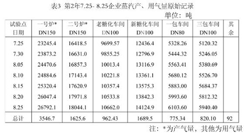 從三年來對氮氣流量計測量飽和蒸汽的試驗數(shù)據(jù)統(tǒng)計,由圖和表可看出對飽和蒸汽的計量效果。