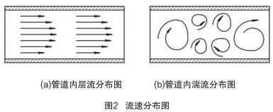 當(dāng) Re > Rec 時,管道內(nèi)流體為湍流(湍流是流體的不規(guī)則運動,流場中各種量**間和空間坐標(biāo)發(fā)生紊亂地變化),如圖 2(b)所示。