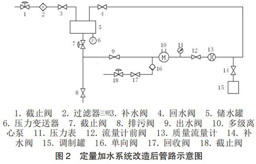 根據(jù)設(shè)計思路,對定量加水系統(tǒng)的管路進(jìn)行了改造設(shè)計,改造后管路示意圖如圖 2 所示。