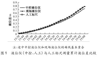 由圖 1 可知,人工標尺測得的液位差值與現(xiàn)場液位儀基本吻合,其變化一致,但中控液位儀顯示的數(shù)據(jù)呈現(xiàn)一定的滯后性,這同信號的傳輸距離與解析方式相關(guān)。在日后的測量過程中,對于吸水井和清水池這些對測量結(jié)果影響較大的地方,需進行人工標尺讀數(shù),或?qū)x表校驗后進行現(xiàn)場讀數(shù)記錄。