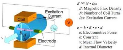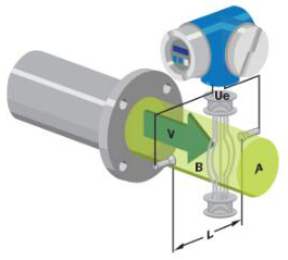 基本上,當導電液體流過磁場時,會感應出電壓。為了測量該產(chǎn)生的電壓(與流動的液體的速度成正比),使用了兩個彼此相對安裝的不銹鋼電極。