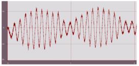 當(dāng)ω1-ω2趨近于0時(shí),即兩個(gè)信號(hào)的頻率越接近時(shí),拍振幅值越大。拍振信號(hào)的時(shí)域波形及頻譜圖如下,在頻譜圖中可看到兩個(gè)頻率接近的峰。