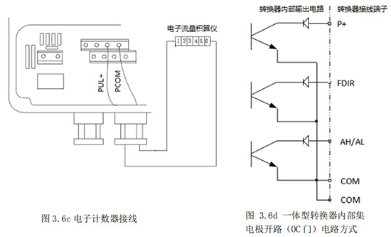 頻率(脈沖)、上下限報(bào)警、流向標(biāo)示等輸出均為集電極開路的電平輸出信號。