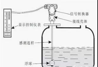 原理: 浮球液位計結構主要基于浮力和靜磁場原理設計生產的。帶有磁體的浮球(簡稱浮球)在被測介質中的位置受浮力作用影響:液位的變化導致磁性浮子位置的變化。浮球中的磁體和傳感器(磁簧開關)作用,使串連入電路的元件(如定值電阻)的數(shù)量發(fā)生變化,進而使儀表電路系統(tǒng)的電學量發(fā)生改變。也就是使磁性浮子位置的變化引起電學量的變化。通過檢測電學量的變化來反映容器內液位的情況。