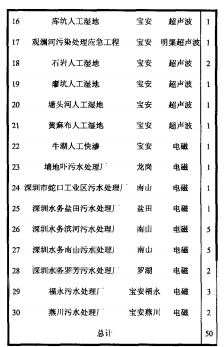 截止目前,深圳市內(nèi)外所有污水處理廠(包括人工濕地、快滲)共計(jì)30余座,重點(diǎn)監(jiān)控的排污流量計(jì)50余臺(tái)。統(tǒng)計(jì)數(shù)據(jù)如下表(見表1)